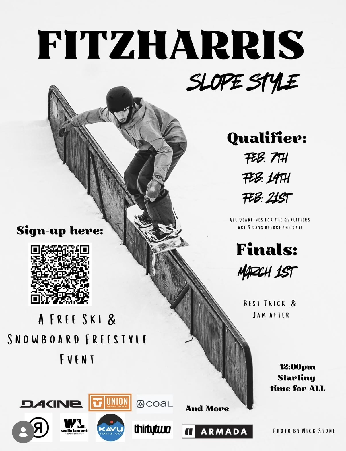 Join us at Powder Ridge for the Annual Fitzharris Slopestyle Competition and throw down your best tricks 💥